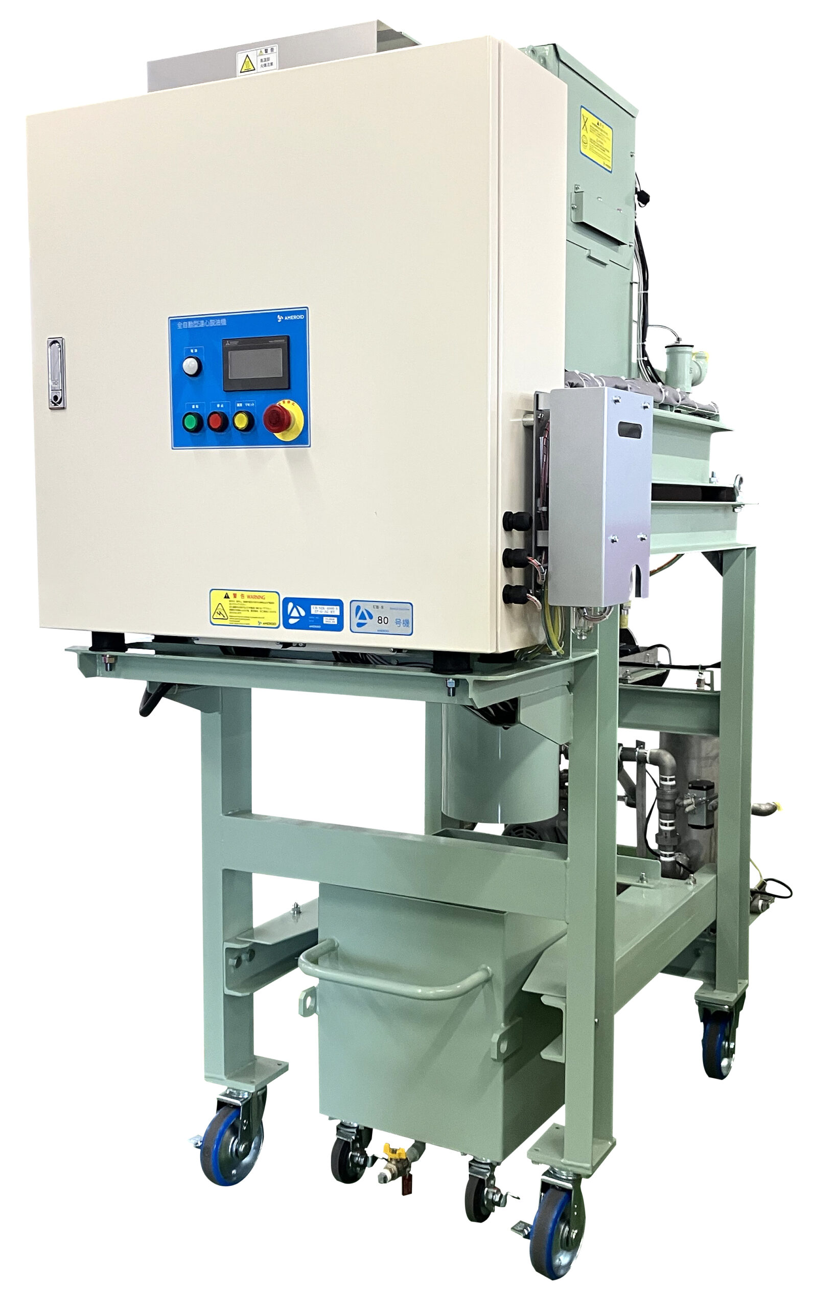 遠心式:遠心力と比重差を利用し廃液から夾雑物や油を回収。