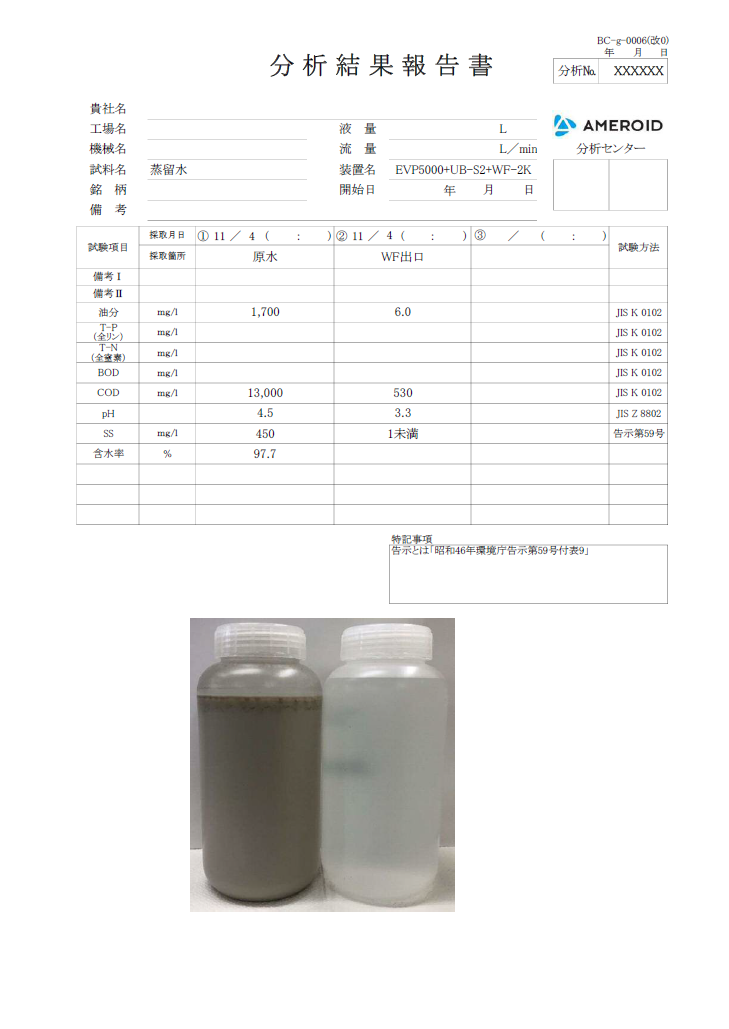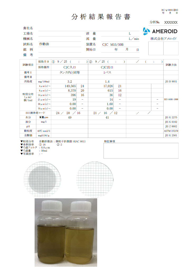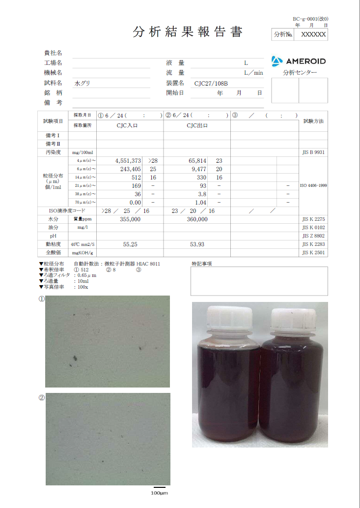 これにより、装置導入の可否判断や浄化方法(液体をキレイにする方法)・運用条件の検討を的確に行なうことができ、トラブルの未然防止にもつながります。