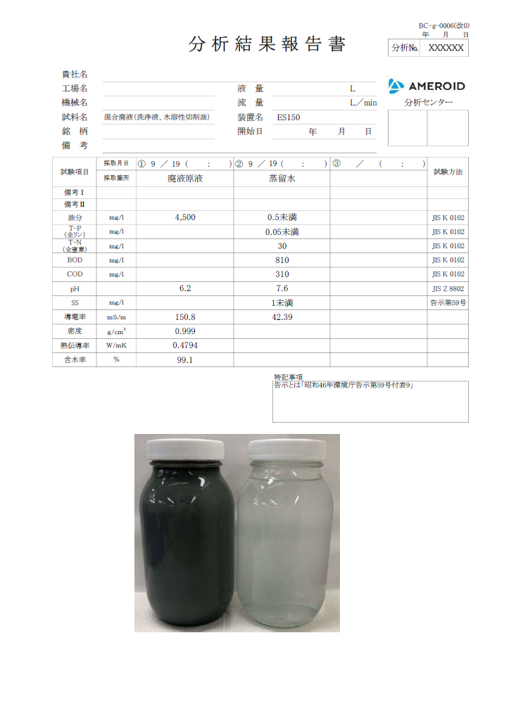 アメロイドの分析サービスでは導入後の液体を定期的に分析し、浄化性能が適切に維持されているか、トラブルの兆候がないか等を数値で確認できます。